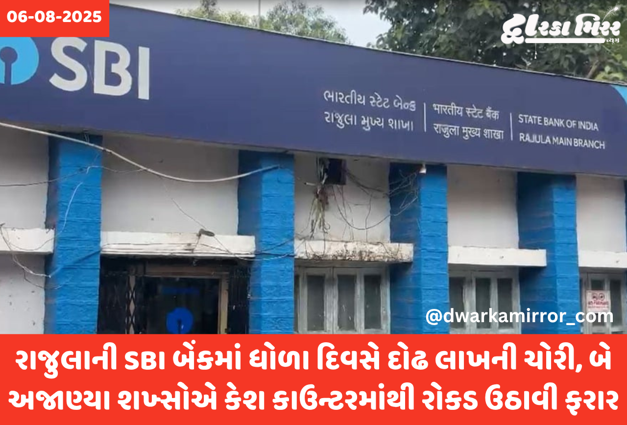 અમરેલી જિલ્લાના રાજુલા શહેરમાં ધોળા દિવસે ચોરીની ચોંકાવનારી ઘટના સામે આવી છે. શહેરની મુખ્ય બજારમાં આવેલી સ્ટેટ બેંક ઑફ ઈન્ડિયા (SBI)ની બ્રાંચમાં બે અજાણ્યા શખ્સોએ બેંકના કેશ કાઉન્ટરમાં ઘૂસીને રૂ. 1,50,000ની રોકડ ઉઠાવીને ફરાર થઈ ગયા હતા.