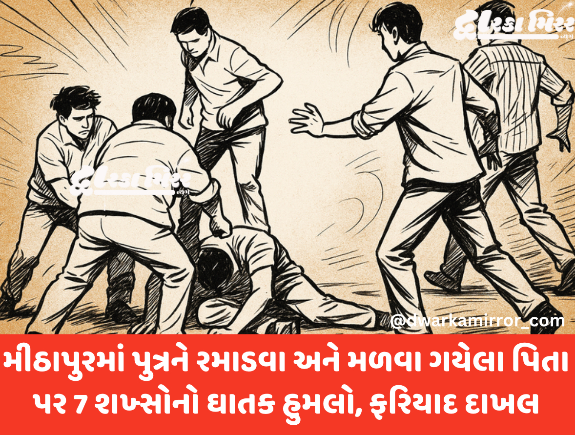 દેવભૂમિ દ્વારકા જિલ્લાના મીઠાપુર ટાઉન બીટ વિસ્તારમાં એક ગંભીર પરિવારઝઘડાની ઘટના બની છે. જેમાં એક પિતા પુત્રને રમાડવા માટે ગયા ત્યારે તેમના પર હુમલો કરાયો હતો. મીઠાપુર પોલીસ સ્ટેશન (પાર્ટ-એ) ખાતે આ અંગે ગુ.ર. નં. ૧૧૧૮૫૦૦૫૨૫૦૫૦૦/૨૫ મુજબ ભારતીય દંડ સંહિતા કલમ ૧૧૭(૧), ૧૧૫(૨), ૫૪, ૩૫૧(૩), ૩૫૨ હેઠળ ગુનો નોંધાયો છે.
