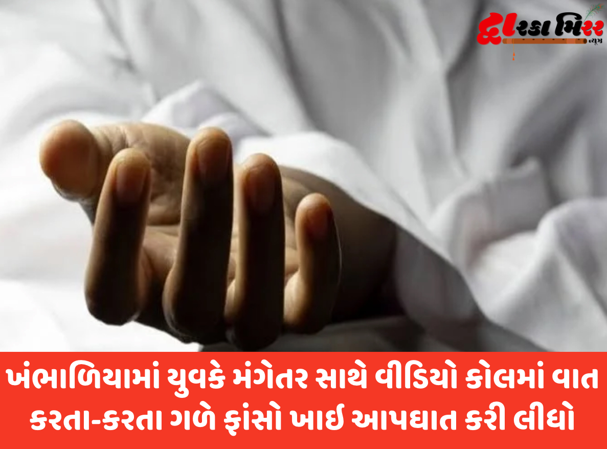 દેવભૂમિ દ્વારકા જિલ્લાના જામ ખંભાળિયામાંથી એક હ્રદયવિદ્રાવક ઘટના પ્રકાશમાં આવી છે. અહીં એક 29 વર્ષીય યુવકે પોતાની મંગેતર સાથે મોબાઈલ પર વીડિયો કોલ કરતી વેળાએ જ ગળે ફાંસો ખાઈ આપઘાત કરી લીધો હોવાનું ચોંકાવનારું સામે આવ્યું છે. સમગ્ર ખંભાળિયા શહેર આ દુઃખદ ઘટના પરથી હજુ સુધી સ્તબ્ધ છે.