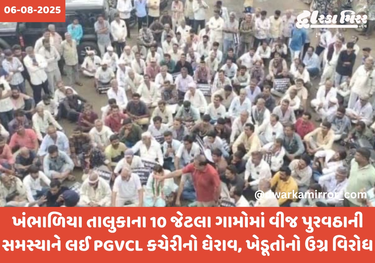 દેવભૂમિ દ્વારકા જિલ્લામાં વીજ પુરવઠાની ગંભીર સમસ્યા સામે ખેડૂતો હવે રસ્તા પર ઉતરવા મજબૂર બન્યા છે. ખંભાળિયા તાલુકાના આશરે 10 જેટલા ગામોના ખેડૂતો છેલ્લા ઘણાં સમયથી અપૂર્ણ અને અસમયે મળતા વીજ પુરવઠાથી પરેશાન છે. ખાસ કરીને ખેડૂતોએ મગફળી અને અન્ય પાકોની સિંચાઈ માટે વીજળી મળતી ન હોવાને કારણે પાક નષ્ટ થવાની ભીતિ વ્યક્ત કરી છે.